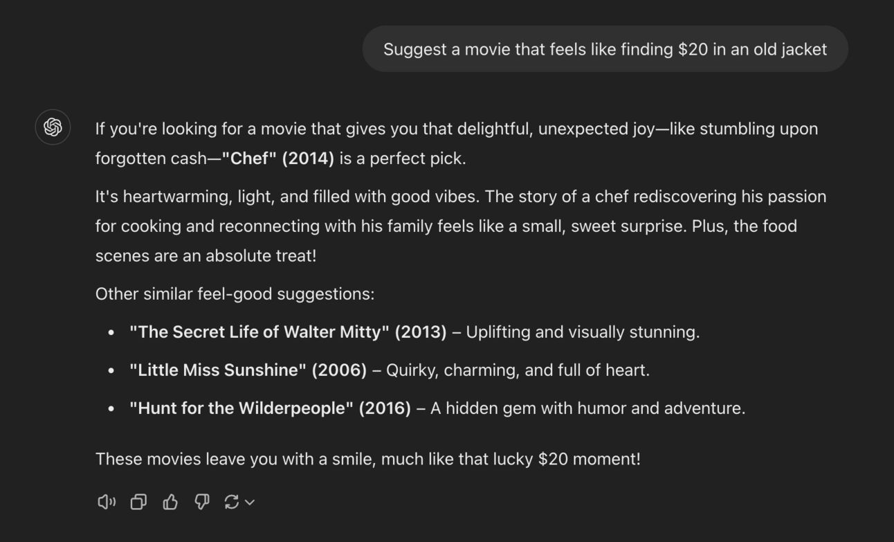 Don’t be afraid to get creative—ask the AI to explain why the movie fits!