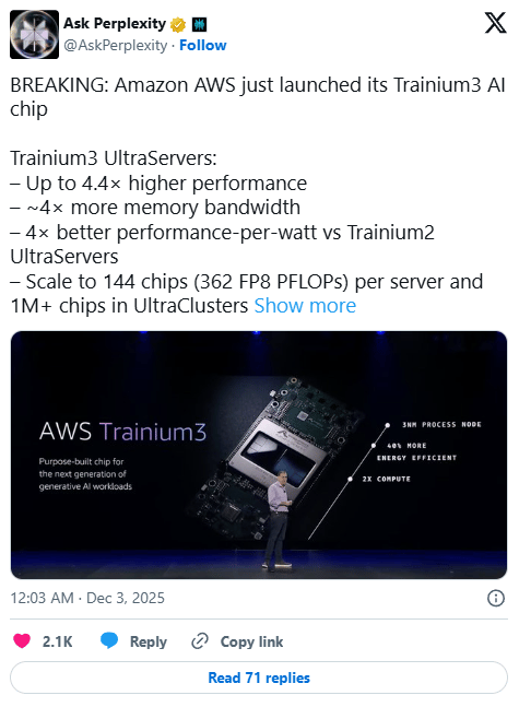 💾 Amazon launches Trainium3 to challenge Nvidia