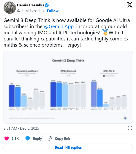 🤔 Gemini 3 Deep Think available for Ultra users