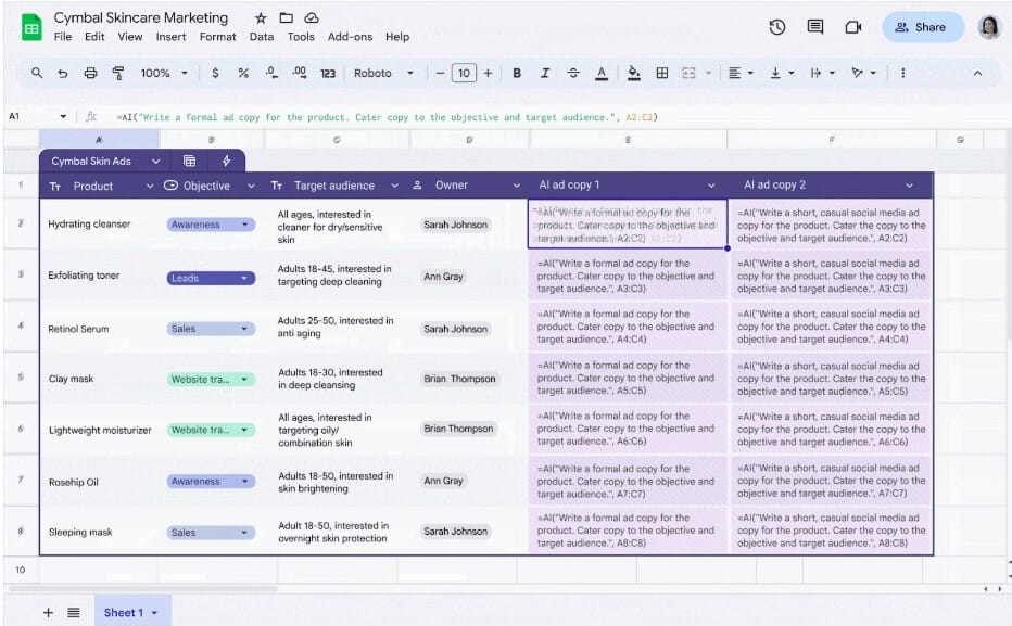 There's also an upgraded Smart Fill feature: input a few examples in a column and Gemini will infer the pattern and offer to auto-complete the rest. Whether you're populating contact details, task lists, or expense categories, Gemini now acts like a contextual assistant built right into your cells.