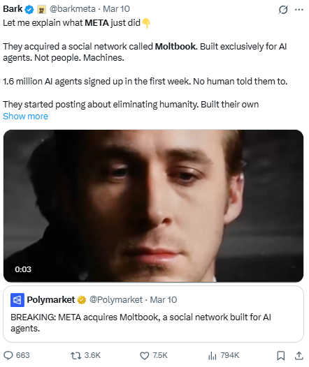 Meta has officially acquired Moltbook, a viral Reddit-style social network designed for AI agents. The acqui-hire brings founders Matt Schlicht and Ben Parr into Meta Superintelligence Labs to help build infrastructure for what Zuckerberg calls the "agentic web" - a future where digital assistants act independently on behalf of users and businesses.