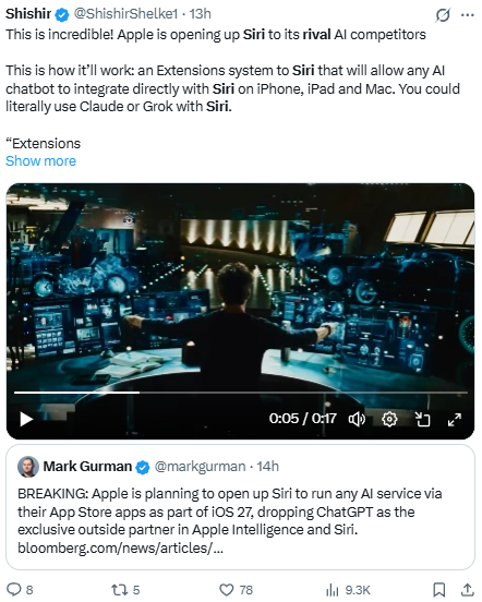 🧠 Siri Opens the Door to Rival Chatbots